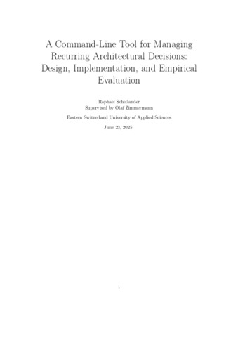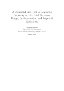 Schellander, Raphael (2025) A Command-Line Tool for Managing Recurring Architectural Decisions: Design, Implementation, and Empirical Evaluation. Other thesis, Informatik.