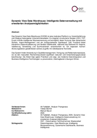 Fadlallah, Ali and Thangarasa, Akalyan (2025) Dynamic View Data Warehouse: Intelligente Datenverwaltung mit erweiterten Analysemöglichkeiten. Masters thesis, OST Ostschweizer Fachhochschule.