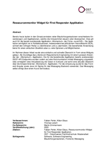 Perler, Fabian and Glaus, Kilian (2025) Ressourcenmonitor Widget für First Responder Applikation. Masters thesis, OST Ostschweizer Fachhochschule.