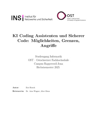 Horsch, Eric (2025) KI Coding Assistenten und Sicherer Code: Möglichkeiten, Grenzen, Angriffe. Other thesis, OST Ostschweizer Fachhochschule.
